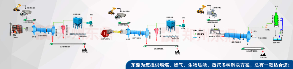瓦斯氣煤泥烘干機配置組成:瓦斯氣供熱系統,輸送機、打散喂料機、滾筒烘干機、引風機、除塵器、電控系統及其他配套設備。